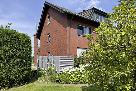 Das 1973 gebaute Mehrgenerationenhaus in Bottrop. Davor das Außengerät der Biblock®.