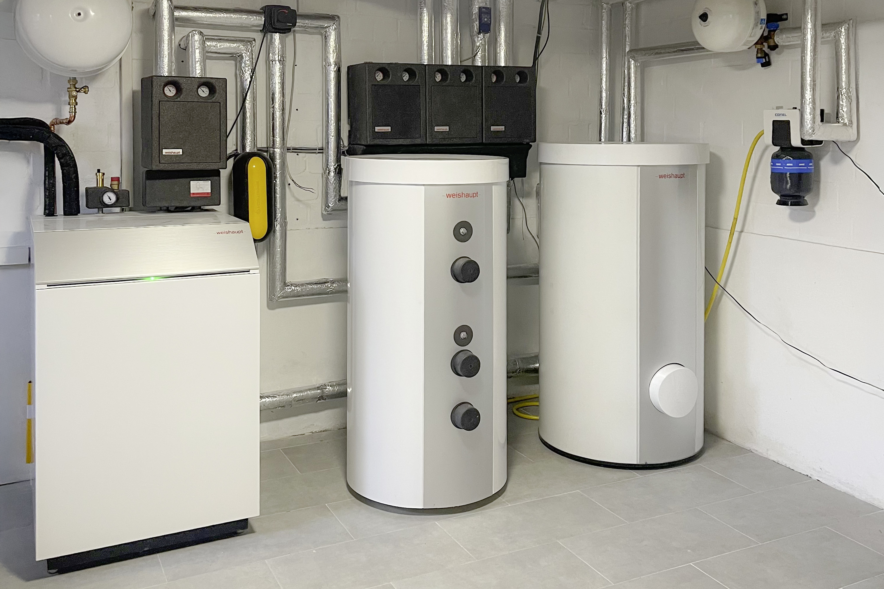 Das Biblock® Innengerät und die zwei Speicher im Technikraum.