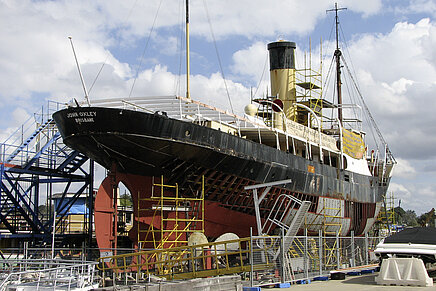 Der Großteil der Restaurierungsarbeiten wurde von Freiwilligenteams der Sydney Heritage Fleet (SHF) durchgeführt, die mehr Heißnietenarbeiten durchgeführt haben als jede andere Organisation in Australien. Das Bild des Schiffes auf dem Arbeitsponton zeigt, wie die SHF in der Regel größere Rumpfrestaurierungen durchführt, wobei traditionelle Schiffsreparaturtechniken zum Einsatz kommen, um die Authentizität zu bewahren.