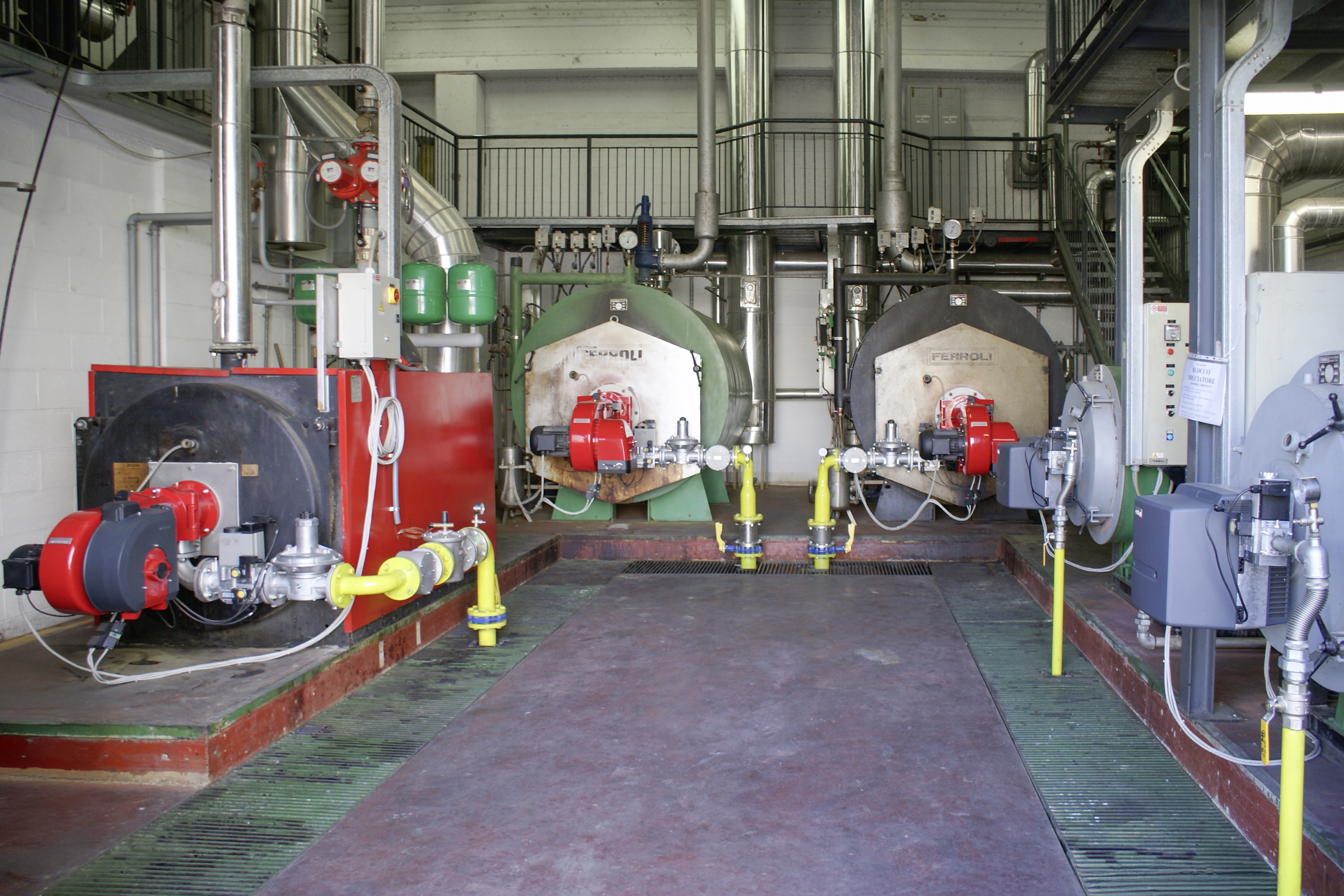 Blick in die Heizzentrale des Unternehmens mit Weishaupt Gasbrennern der Typen WM-G und WG.