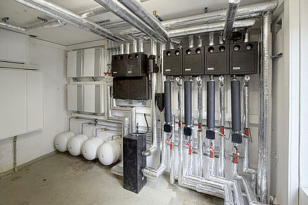 Der Heizraum mit der Regelungs- und Verteilungstechnik.