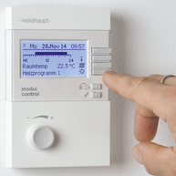 Bedienung und Einstellung der Weishaupt Thermo Condens Systeme erfolgt über eine mobile Bedieneinheit am Gerät oder im Wohnraum. Fernbedienung und -wartung (z. B. über das Internet) sind mit dem optionalen Weishaupt Kommunikationsmodul WCM-COM möglich.